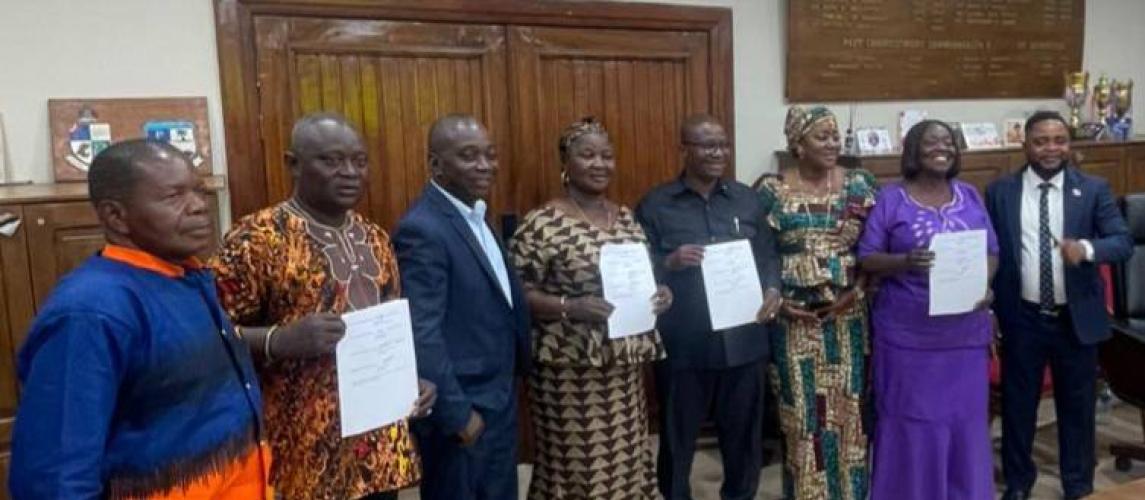 The Oversight team from the MLG pose with Leaders of the Liberia Marketing Assosciation