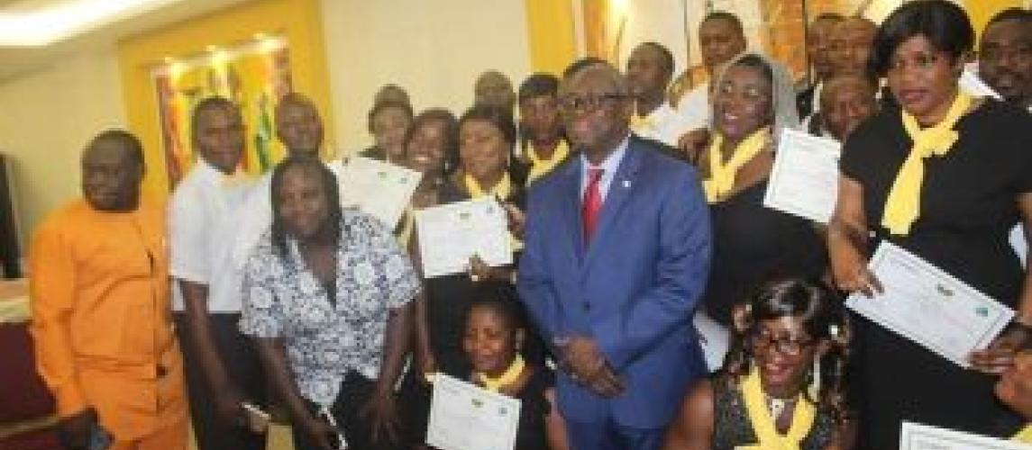 Monrovia, December 2, 2019: On Monday, December 2nd, thirty-nine (39) employees of Ministry of Internal Affairs(MIA) and Governance Commission(GC) were proud recipients of certificates following their completion of a 3-month intensive training in many courses geared towards making the two agencies effective in their mandate areas as well as implementation of the Liberia Decentralization program including the Local Government Act of 2018.